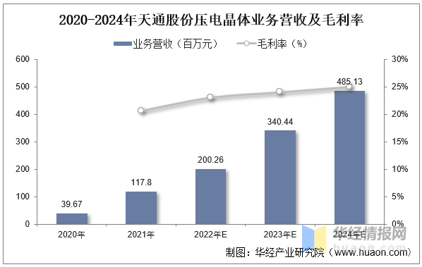 2020-2024年天通股份压电晶体业务营收及毛利率