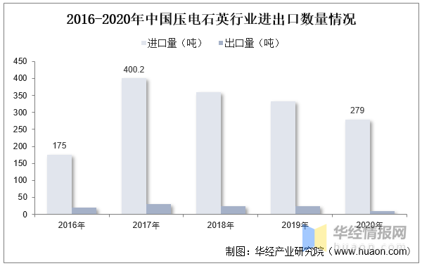 2016-2020年中国压电石英行业进出口数量情况