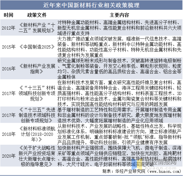 近年来中国新材料行业相关政策梳理